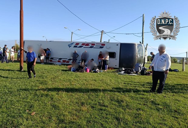Volcó ómnibus que regresaba a Montevideo desde Cataratas y hay ocho personas heridas